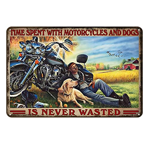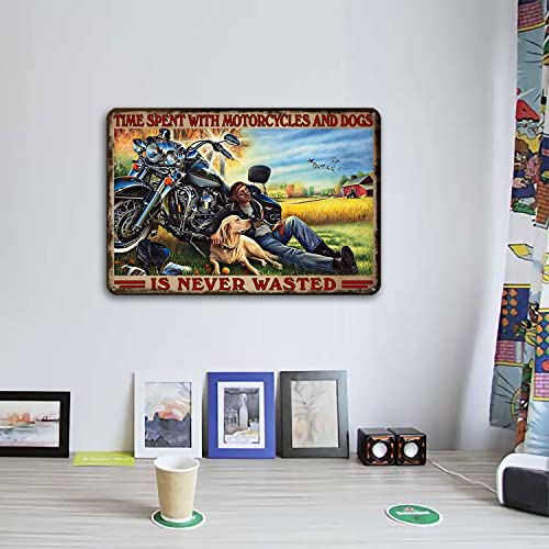 Time Spent with Motorcycles and Dogs is Never Wasted Gifts Funny Bathroom Decor Wall Art Coffee Bar Vintage Metal Tin Sign Office Home Toilet Signs Wall Decor Pictures 8X12 Inch